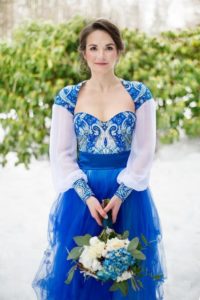 Неймовірно стильно і вишукано виглядають весільні вбрання, виконані в синіх тонах: