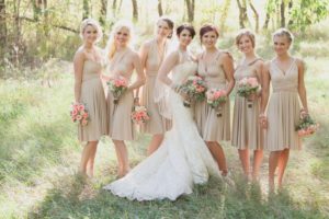 Для гармонійного весільного образу рекомендують одягнути подружок нареченої в цьому ж стилі. При виборі вбрання для подружок слідують тим же правилам. Неяскраві кольори, простий фасон. Кольори подружок можуть бути на кілька тонів яскравіше, ніж у нареченої. Але бажано не перестаратися з цим.