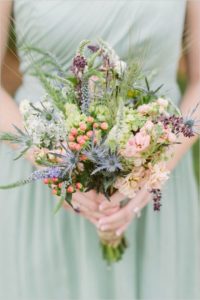 При виборі букета нареченої теж потрібно дотримуватися стиль. Ідеально підійде букет живих польових квітів. Саме він буде виглядати органічно з самою нареченою.