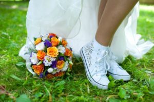 Деякі вагітні наречені і зовсім не намагаються слідувати стереотипам і надягають під сукню білі або прикрашені стразами кеди.