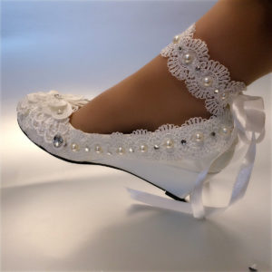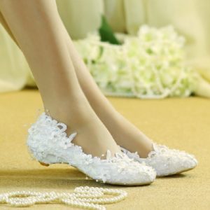 В більшості випадків все ж вагітним нареченим рекомендується віддавати перевагу взуття на суцільній підошві. Наприклад, під шовкове плаття краще всього одягати балетки або закриті туфлі. Вони можуть бути прикрашені стразами, бісером, намистинами та іншими декоративними елементами. Вітається наявність декоративного ремінця.