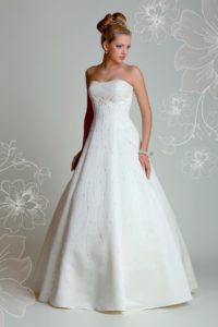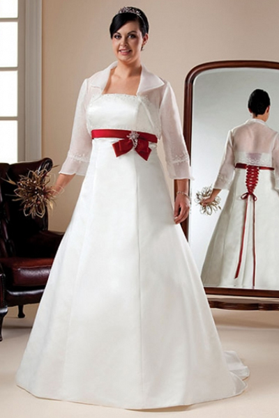 В основному, в каталогах весільних салонів представлені сукні для наречених із завищеною талією або А-образного силуету. Дані фасони є найбільш придатними, адже завищена талія дозволяє акуратно підкреслити груди, а А-подібний силует з плавно розширюється донизу спідницею дозволяє приховати не тільки кругленький живіт, але і повноту.