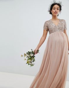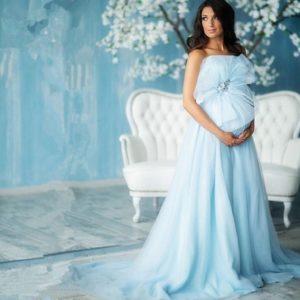 Довгі сукні все також актуальні і в більшості випадків саме довжину максі намагаються вибирати нареченої в положенні. Фасонів таких урочистих суконь в підлогу існує чимала кількість. Залежно від терміну вагітності дівчина може віддати перевагу пишним моделям, з корсажем і завищеною талією.