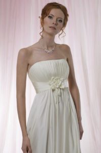Весільні сукні грецького стилю із завищеною талією також чудовий варіант для невисоких дівчат. Такий фасон дозволяє зробити фігуру візуально вище і гармонійніше, маскує занадто широкі стегна і, крім того, вигідно підкреслює бюст.