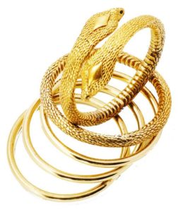 Створити нетривіальний стильний образ можна за допомогою браслетів на передпліччі. Популярні варіанти у вигляді змій і з оригінальним орнаментальним візерунком: