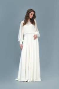 Модний тренд – весільну сукню в грецькому стилі з довгими широкими рукавами і шлейфом: