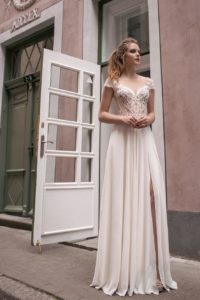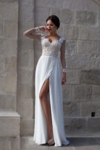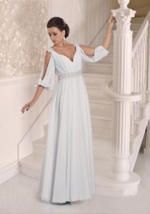 Досить часто на моделях в грецькому стилі зустрічаються рукава з розрізом. Вони надають весільного образу ніжності, легкості: