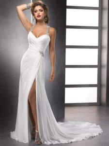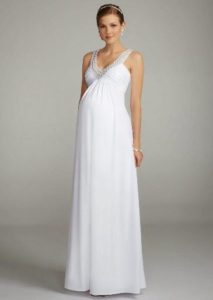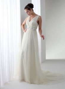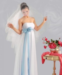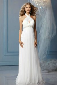 Підійде грецьке весільну сукню і для вагітних наречених – завищена талія дозволить приховати виступаючий животик, а не обмежує рухів і не облягаючий крій забезпечить майбутній мамі комфорт і зручність.