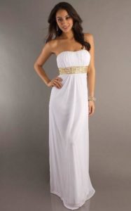 Класичні білі моделі в підлогу без рукавів із завищеною лінією талії: