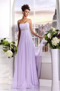 У моді також незвичайні, яскраві відтінки: білий, кораловий, небесно-блакитний, синій, золотистий. Стильно і нетривіально буде виглядати на нареченій грецьке плаття оригінального фіалкового або світло-рожевого відтінку.