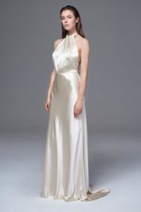 Моделі з високою півкруглою горловиною, що закриває шию, також вельми популярні у наречених. Вони виглядають незвично і стильно, надають нареченій схожість з античною богинею.