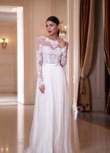 Весільну сукню з цнотливим закритим верхом – для стриманих наречених, які бажають виглядати максимально розкішно і елегантно.