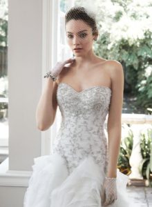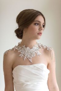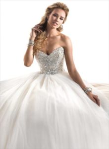 Стрази, вбрання з намистинами, бісером та перлинами є одним з найпоширеніших прикрас для весільних нарядів. Стрази роблять плаття більш святковим, надають йому неймовірний блиск.