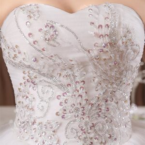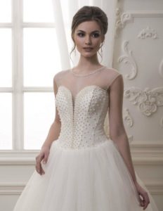 Білосніжний перли надає образу нареченої романтики і витонченості. Весільну сукню з розшитих перлами корсетом виглядає надзвичайно розкішно і витончено.