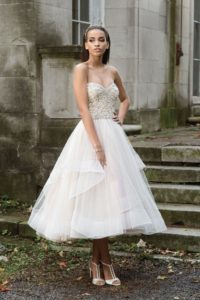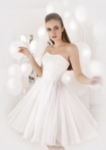 Корсетні моделі довжини міні або міді з пишною спідницею підійдуть для мініатюрних наречених, які бажають виглядати вище і стрункіше. Платтячко подібного фасону виглядає незвично і стильно, а тому буде до лиця дівчатам, які шукають чогось оригінального і незвичайного.