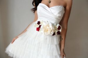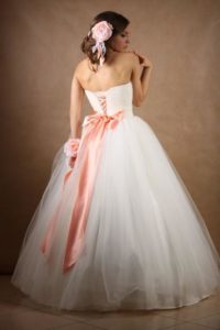 Цікаве рішення, яке також допоможе урізноманітнити образ: зашнурувати корсет сукні яскравою стрічкою – приміром, червоної, рожевої, золотий або синьою.