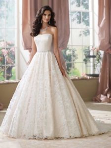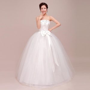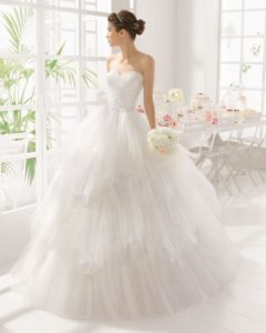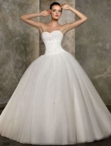 Класичні моделі з рясно декорованим корсетом, без рукавів і бретелей, з пишною спідницею і вирізом сердечком: