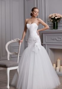 Найбільш популярним у наречених є злиту модель з вшитим в спідницю корсетом.