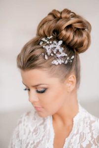 Хорошим рішенням буде прикрасити волосся витонченої мініатюрної діадемою або короною, багато декорованим обручем або обідком, чарівними шпильками, квітами.