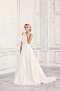 Трендом для А-подібного фасону вінчальних нарядів є мінімалістичні фактура і декор тканини: відсутність мережива, каменів, вишивки.