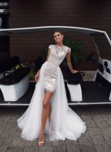 Оптимальний варіант для того, щоб отримати гарні фотографії, ефектний образ офіційної частини церемонії, а після трохи розслабитися (хоча для нареченої на власному весіллі це дуже відносне поняття) – сукня-трансформер. Передбачені наступні моделі: