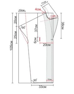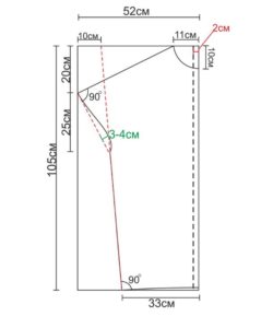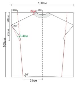 Для побудови викрійки знадобляться лише базові мірки, довжина готового виробу становить 1 м. В першу чергу, малюють спинку: