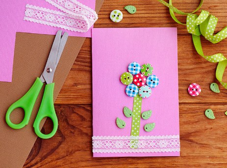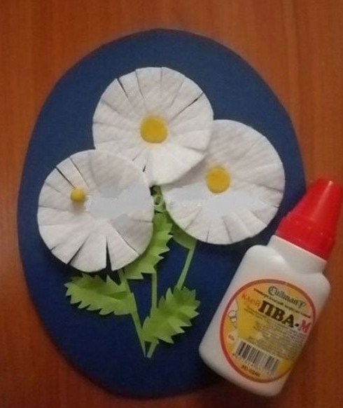 - Листівка для мами з кольорового паперу і ватяних дисків