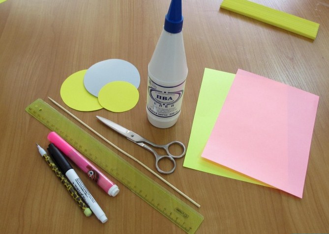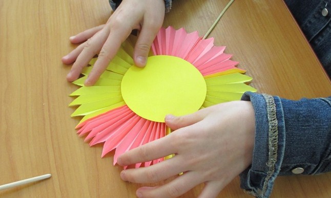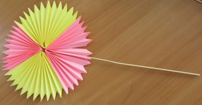 5. Далі потрібно приклеїти паличку між сегментами. Виходить сонечко на паличці.