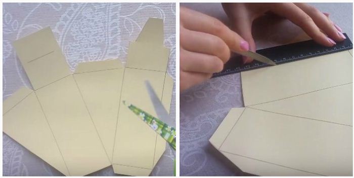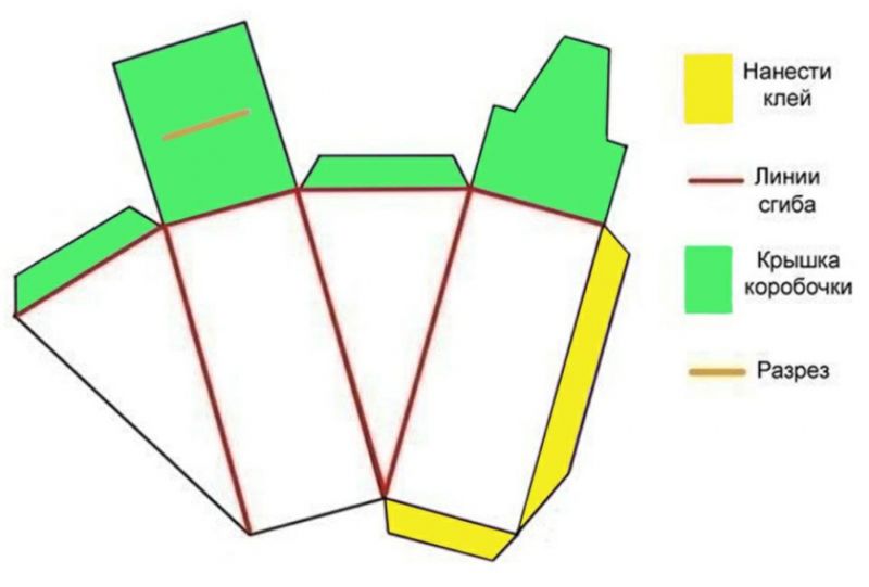 2. Тепер нам потрібно склеїти коробочку двостороннім скотчем як показано на малюнку і зробити проріз на кришці.