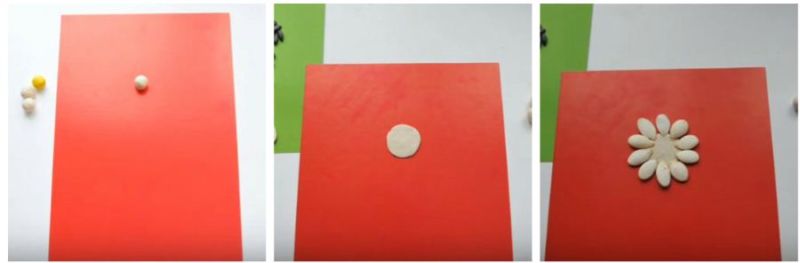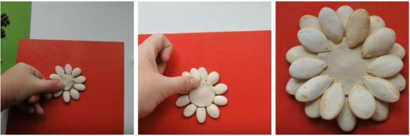 Малюки можуть зробити аплікацію з насіння у вигляді красивої квітки. Вона проста у виконання і вимагає мінімуму матеріалів для виготовлення. Приступимо.