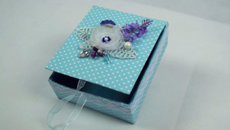 Зробимо чудову блакитну скриньки для маминих прикрас або інший дрібниці. З першого погляду і не зрозумієш, що в її основі знаходиться звичайна коробка з-під чаю.