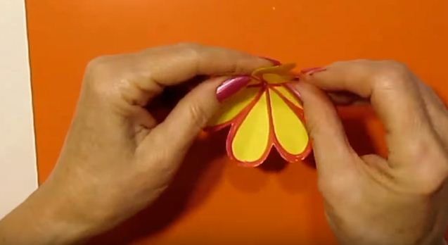 6. Тепер налагоджуємо розфарбований пелюстка на той, який ми не чіпали і склеюємо їх.