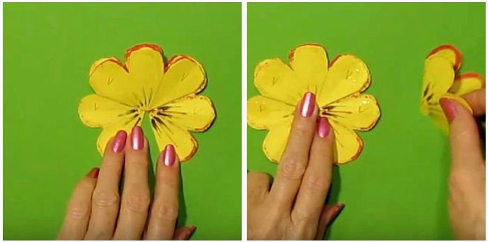 4. Тепер відріжемо один з пелюсток у квітки. Це необхідно для того, щоб він вийшов об’ємним.