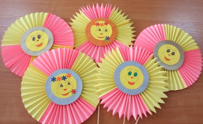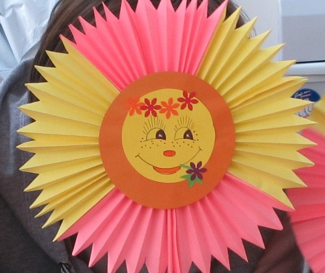 Дітки дитсадівського віку можуть легко змайструвати виріб з паперу «Матуся — яскраве сонечко моє!»