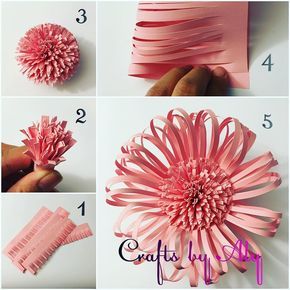А якщо взяти гофрований папір і обрізати її певним чином, то можна отримати чудові квіточки у вигляді кульбаби, гвоздики, півонії або хризантеми: