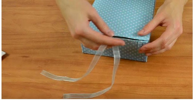 3. З двох сторін приклеїмо стрічки, щоб коробка вільно закривалася.