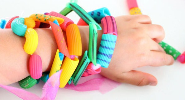 А зробити намисто або макарони для матусі буде цікаво як дівчаткам, так і хлопчикам. Тільки їх потрібно відразу пофарбувати в різні кольори, дочекатися, поки вони висохнуть. А вже потім формувати прикраса. Так само для краси з вовняних ниток можна зробити бубонці і прикріпити до виробу.