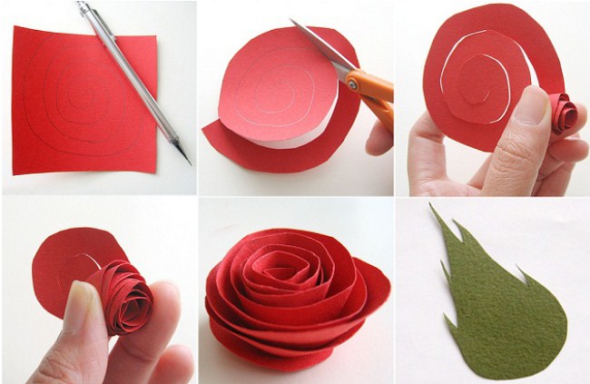5. Беремо край спіралі і звертаємо по колу, формуючи трояндочку. Потім квіточка приклеюємо до зеленого стеблинки.