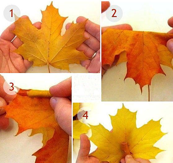 Спочатку потрібно пропрасувати листочки через газету (від цього вони стануть рівніше). Працювати з такою виробом необхідно обережно, щоб ненароком не розірвати листя. А хід роботи представлений в покрокових фото: