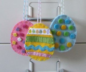 З фетру також можна зробити своїми руками красиві пасхальні яйця в школу.