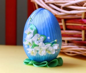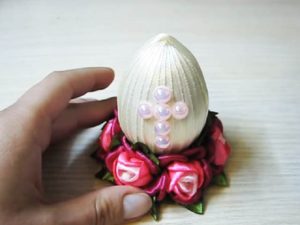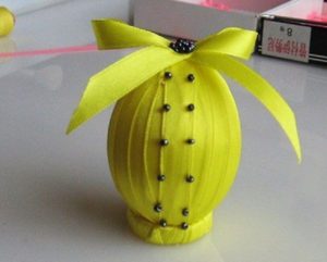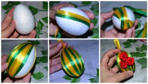 З допомогою стрічок в школу на Великдень можна виконати своїми руками красиву річ у вигляді прикрашеного яйця. До того ж такими декоративними крашанками можна доповнити самостійно зроблену кошик з вищеописаного майстер-класу.