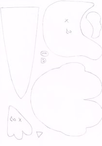 З допомогою шаблону вирізають по 2 заготовки з фетру кожного кольору.