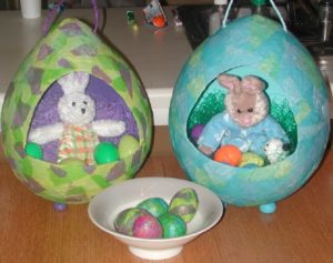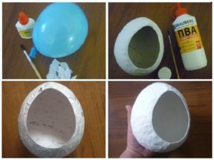 Крім аплікації, можна створити своїми руками красиву великодню композицію в техніці пап’є-маше, у вигляді яйця на Великдень.
