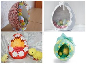 Варіантів виробів, які можна зробити своїми руками дітям на Великдень в школу, існує також велика кількість. При цьому різноманітність полягає не тільки у виборі певного предмета або елемента, пов’язаного зі святом, але і в багатому виборі матеріалів для виготовлення.