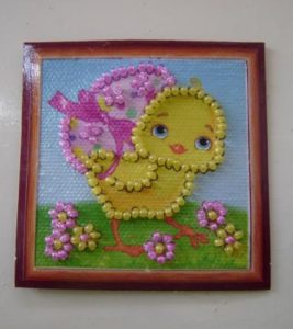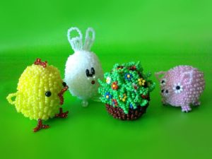 Вироби з бісеру, зроблені своїми руками на Великдень, також є дуже красивими, але так як не всі діти початкових класів вміють плести бісером, то слід вибирати найпростіші варіанти виробів, наприклад, обклеювання основи.