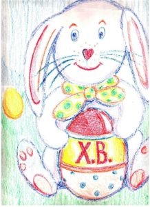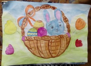 Нерідко вибір падає і ще на один символ свята Великодня – на пасхального кролика, якого діти з задоволенням зображають на своїх маленьких картинах.