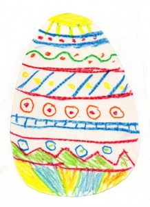 Для самих маленьких художників кращим варіантом красивого малюнка на Великдень стане пасхальне яйце, яке намалювати не складе праці. Його можна зробити різнобарвним або з незвичайним візерунком, по готовому шаблону або ж дитина намалює його своїми руками без допомоги.