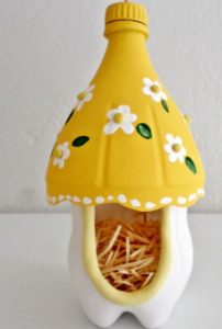 Пластикові пляшки також є відмінним підручним матеріалом, з якого можна зробити своїми руками чимало цікавих поробок на Великдень в школу, наприклад, великодній кошик.