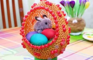 Таку саморобку в дитячий сад, як і пасхальне яйце, може зробити своїми руками кожен, хто хоч трохи володіє спицями.