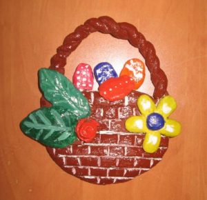 В кошиках на Великдень дарують яйця і носять паски до церкви. Можна зобразити таку саморобку, яка стане прикрасою Великодня і справжнім подарунком для дітей в дитячому садку.